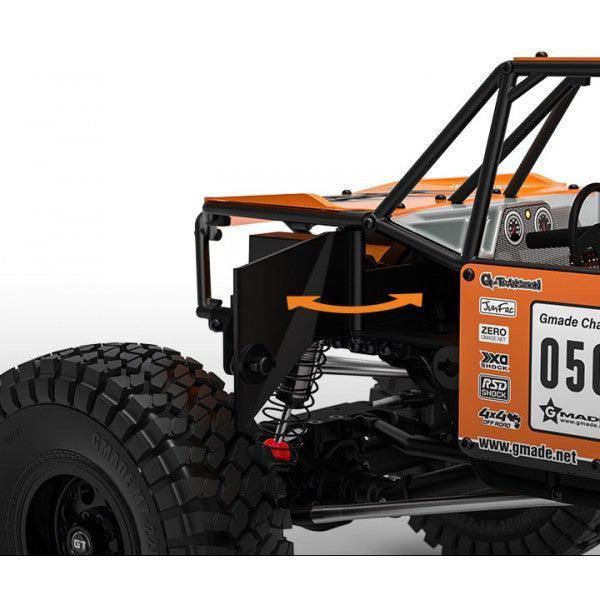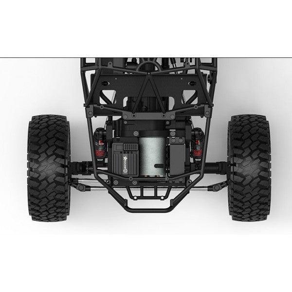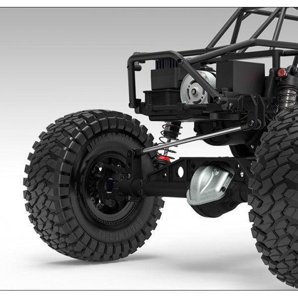 Der GOM ("Bär") verfügt über ein leichtes, steifes Rohrchassis, das sowohl ein realistisches Maßstabsdesign als auch Schutz vor Stößen bietet. Das Lenkservo ist direkt am Chassis montiert, wodurch holprige Lenkbewegungen minimiert werden für optimale Lenkleistung. Er enthält ein staubdichtes Empfängergehäuse und eine leicht zugängliche Batteriefachklappe, die ausreichend Platz für Komponenten bietet. Entwickelt mit einer Vordergewichtsbalance zur Verbesserung der Traktion und zur Verringerung des Kippens, glänzt der GOM bei steilen Anstiegen. Wichtige Merkmale sind ein Maßstabsgetriebe und Zwischengetriebe mit einem 2-Gang-System, XD Belüftungsstoßdämpfer und standardmäßige 2,2-Zoll-Räder. Der Gmade GOM ist bereit, ein Spitzenkandidat in der Rock-Crawling-Community zu werden.