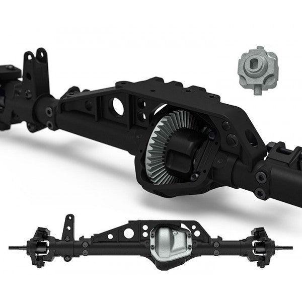 GOM Antriebsstrang - Die GA60 Achsen sind strukturell mit einem Achsrahmen verstärkt, um nicht nur das Bruchrisiko zu verringern, sondern auch ein großartiges Maßstabsdesign zu bieten. Sie sind mit Hi Steer Zero Ackerman Knuckle Arms für verbesserte Spielräume und einen kleinen Wendekreis ausgestattet.
