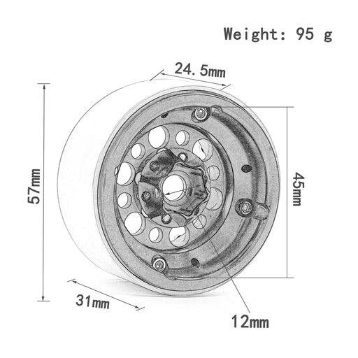 4PCS 1.9" 57x31mm 1/10 Crawler Beadlock Wheels (Metal)
