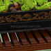 Each violet stem is carefully constructed from vibrant purple and lavender shades, reflecting the natural color gradient of the flower. The flowers gracefully rise from a refined black planter adorned with elegant golden scrollwork - a blend of oriental artistry and modern Zen decoration. The base is designed to resemble a traditional wooden tray, giving the piece a warm and harmonious foundation.
