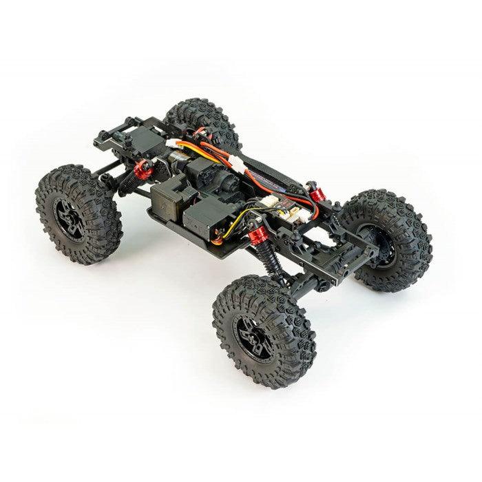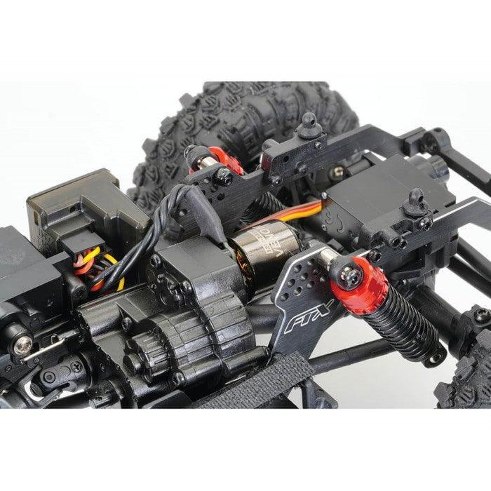 The FTX UTAH is a versatile 1/18th rock crawler with an LCG concept chassis inspired by 1/10th competition models, designed for both indoor and outdoor terrains. The aluminum frame positions the motor forward for a low center of gravity, improving stability. A servo-on-axle (SOA) system ensures precise steering, while the front and rear portal axles maximize ground clearance. The adjustable oil-filled large bore shock absorbers and the wider track with sticky oversized block tires provide excellent traction. Powered by the Furitek Venom brushless system, the centered drivetrain delivers smooth torque and power. The 2-speed transmission allows seamless transitions from crawling to racing. The UTAH is finished with a streamlined, low body and is built for performance in any environment.