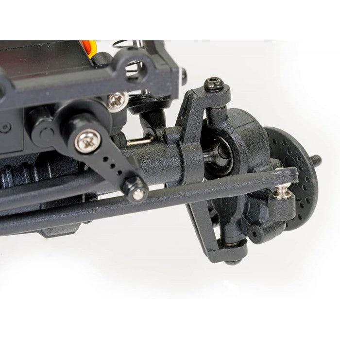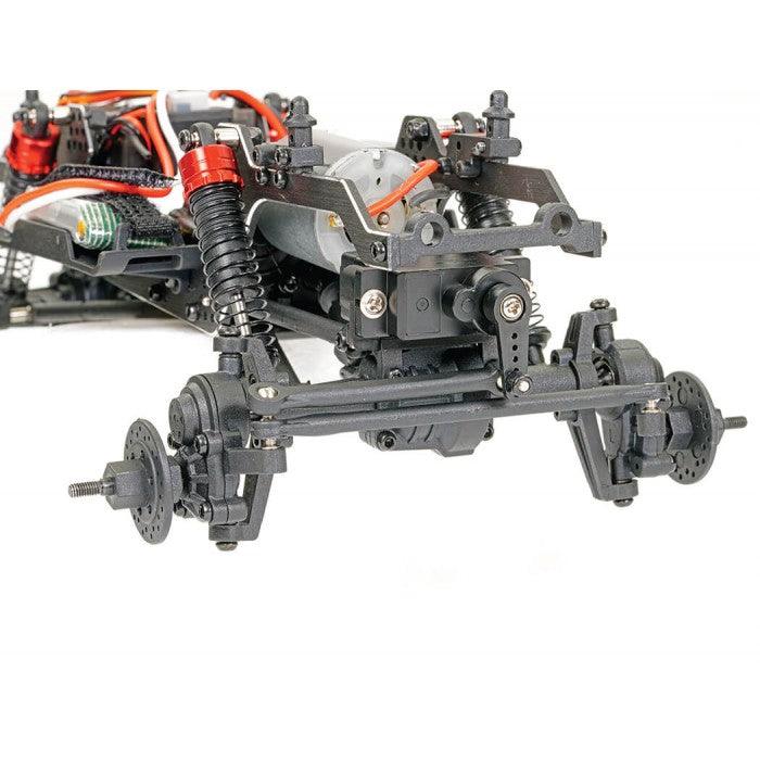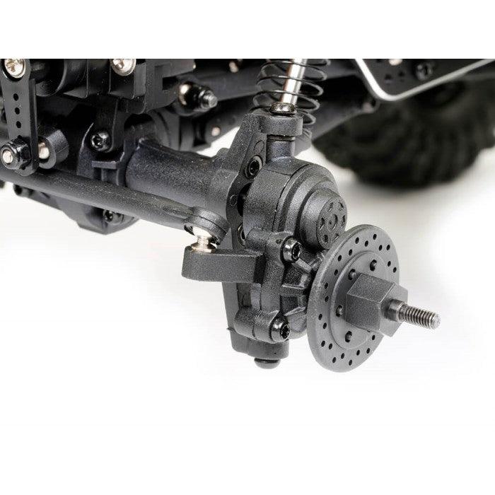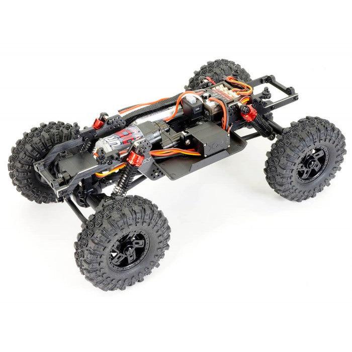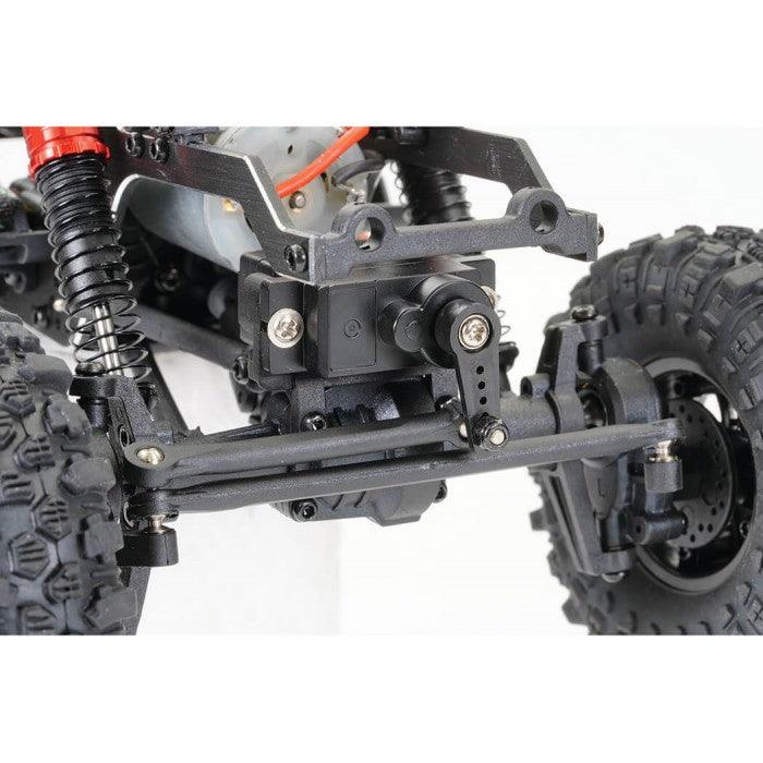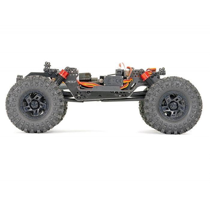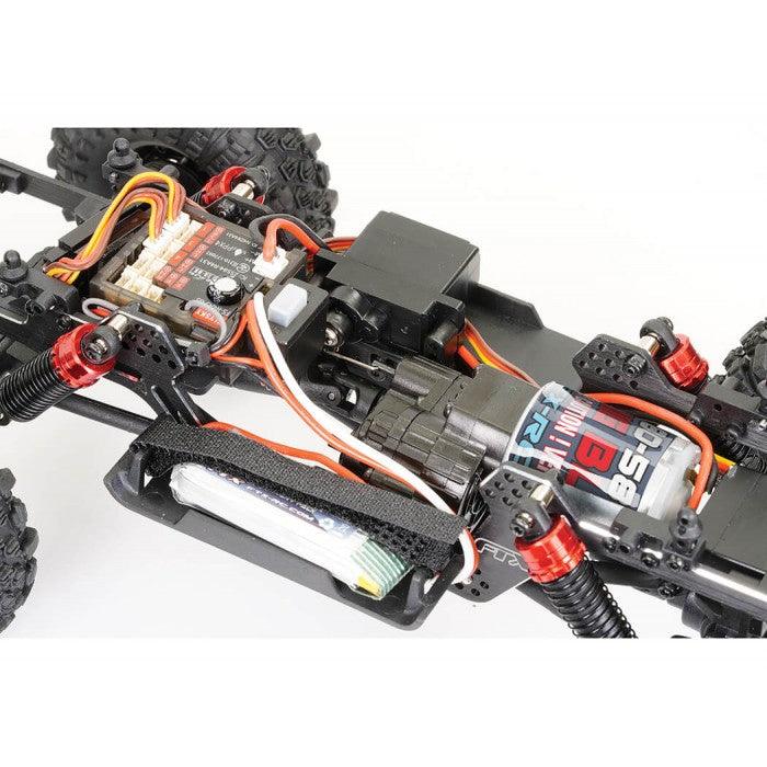 The FTX UTAH is a versatile 1/18th rock crawler with an LCG concept chassis inspired by 1/10th competition models, designed for both indoor and outdoor terrains. The aluminum frame positions the motor forward for a low center of gravity, improving stability. A servo-on-axle (SOA) system ensures precise steering, while the front and rear portal axles maximize ground clearance. The adjustable large bore oil-filled shocks and wider track width with sticky oversized block tires provide excellent traction. Powered by the Furitek Venom brushless system, the centered drivetrain delivers smooth torque and power. The 2-speed transmission allows seamless transitions from crawling to racing. The UTAH is finished with a streamlined, low body and is built for performance in any environment.