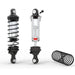 - Grands amortisseurs CNC de 21 mm de diamètre, équipés de tiges d'amortisseur plaquées sous vide, améliorent la fluidité de l'absorption des chocs et les performances de l'huile d'amortisseur, assurant un soutien solide tout en conservant une posture flexible ; remplis d'huile d'amortisseur 350CST et montés en usine avec une ventilation appropriée.