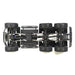 Différentiel à glissement limité à trois essieux et six roues (essieu avant et double essieu arrière commandés par 2 servos), essieux à portail renforcés et pneus MUD de 120 mm pour des performances offroad exceptionnelles.