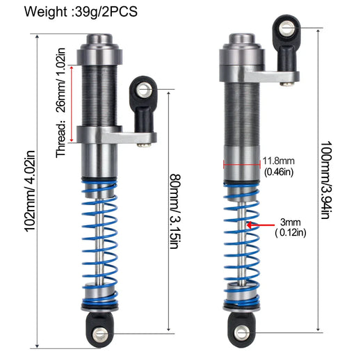 2PCS Fimonda 80-100mm 1/10 Shock Absorber, Adjustable Oil Filled