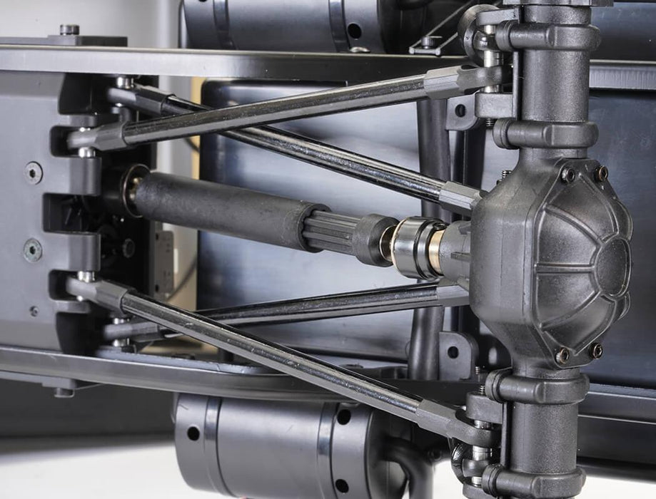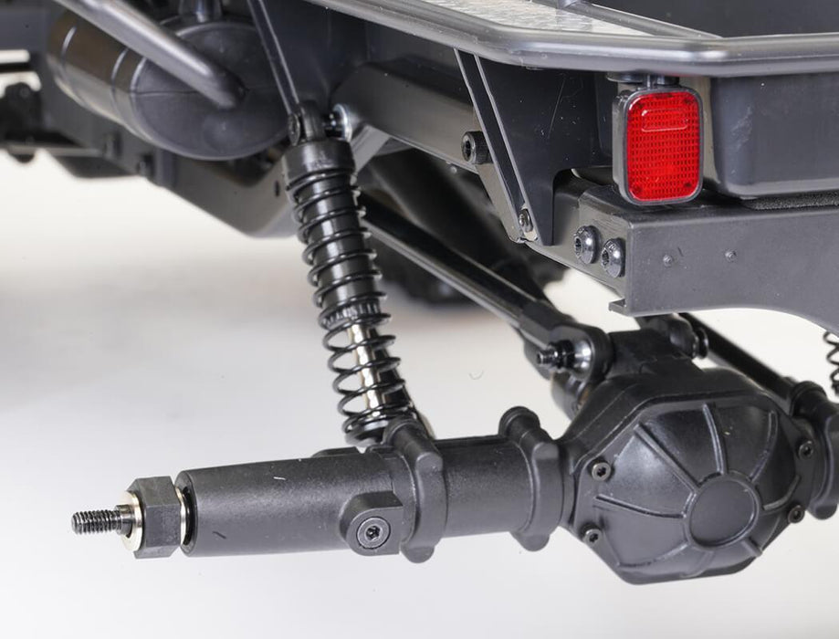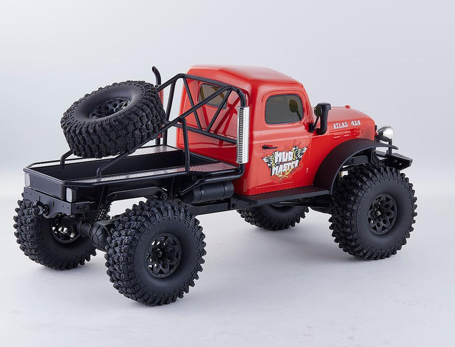 Le 1/10 Atlas est modélisé d'après des camions de course tout-terrain, inspirés des camions militaires utilisés pendant la Seconde Guerre mondiale, qui nécessitaient des capacités tout-terrain exceptionnelles et une grande durabilité. Le camion possède une carrosserie en plastique PC léger avec un centre de gravité bas et une cage anti-roulis en nylon pour une protection supplémentaire en cas de retournement. Le cadre métallique rigide et le système de suspension à quatre bras offrent de fortes capacités d'escalade, garantissant une fiabilité sur terrain accidenté. Le châssis est conçu à la fois pour des performances dynamiques et un réalisme statique, reproduisant fidèlement le véhicule original. Parfait pour les amateurs de tout-terrain, l'Atlas offre une expérience de conduite tout-terrain réaliste, prêt à affronter marais, collines et plus encore.