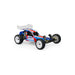 De JConcepts RC10 “Protector”-body combineert klassieke jaren ’80 buggy-stijl met moderne precisie. Met een achterwaarts geplaatste cabine, eenvoudige side-pods en meerdere zijramen biedt hij een authentieke vintage look. De verhoogde achterkant zorgt voor bescherming en stevigheid, terwijl het gecentreerde dak de aerodynamica verbetert. De meegeleverde 5.5” vleugel biedt verstelbare neerwaartse druk en een moderne, agressieve uitstraling.