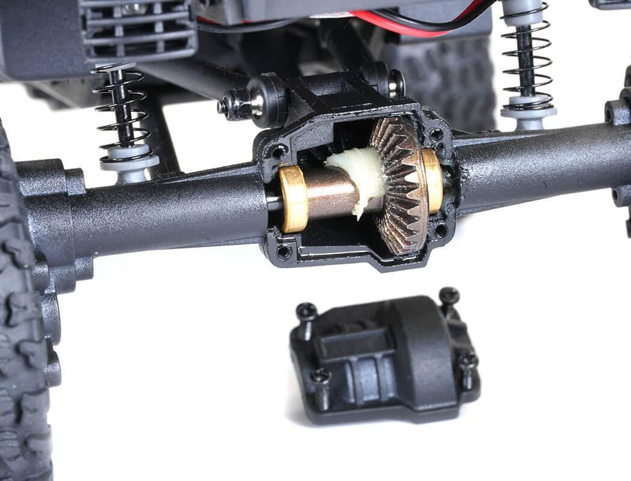 De Unitrak belichaamt de veelzijdige geest van multifunctionele trucks die wereldwijd te vinden zijn in jungles, bergen en woestijnen, en die dienen voor militaire, expeditie- en rally-raidfuncties. De Outback Mini "XP"-specificatie is voorzien van nieuw ontworpen volledig metalen portaalassen voor verbeterde bodemvrijheid en een 104:1 eindoverbrengingsverhouding voor soepel kruipen met hoog koppel. Een stuurhoek van 45° biedt een strakke draaicirkel van 80 cm voor veelzijdige indoor- en outdoorparcoursen. Schaaldetails omvatten gegoten bumpers, led-verlichting, ruitenwissers, spiegels, een snorkel, beadlock-wielen en verborgen carrosseriebevestigingen. Optionele upgrades zoals binnenspatborden, messing wielgewichten en met olie gevulde schokdempers verbeteren de prestaties verder, waardoor de Unitrak klaar is voor elk avontuur.